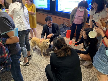 在8月28日中午,本所邀請到流浪動物花園協會的創辦人黃小姐(Rose Huang),分享她20年來,在一些義工及中途拔拔麻麻的協助下,創造出許許多多翻轉悲慘犬生/貓生為幸福家人的故事。同時,黃小姐易攜帶了教練貓及教練狗至現場,讓本所同仁與其同樂,並學習人類應該如何與貓狗互動。