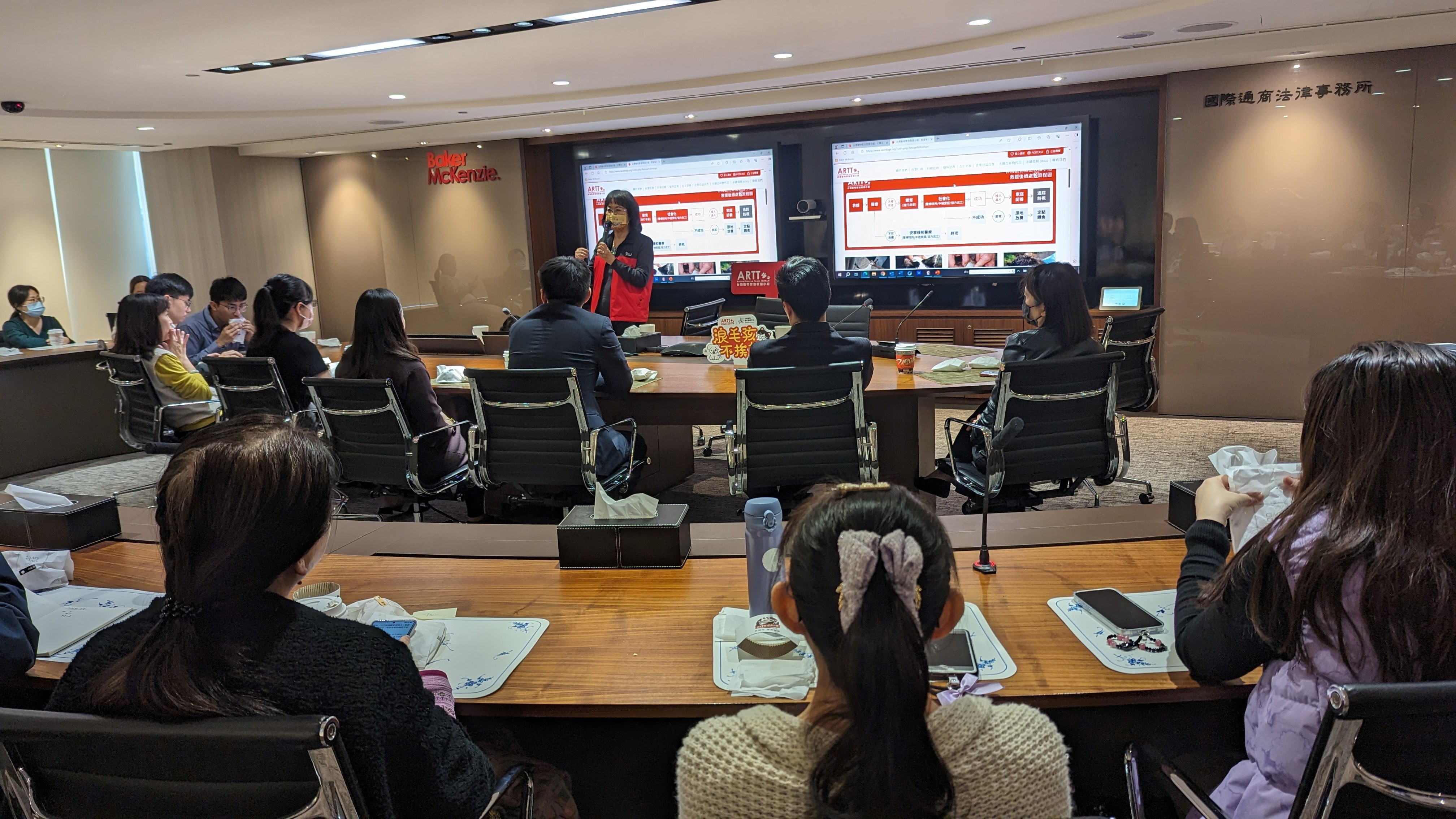 演講後,倪理事長及何秘書長也與本所同仁交流討論動物救援的相關議題,除了贈送「台灣動物緊急救援小組」的精美禮物外,還讓本所同仁與小不點親近互動。